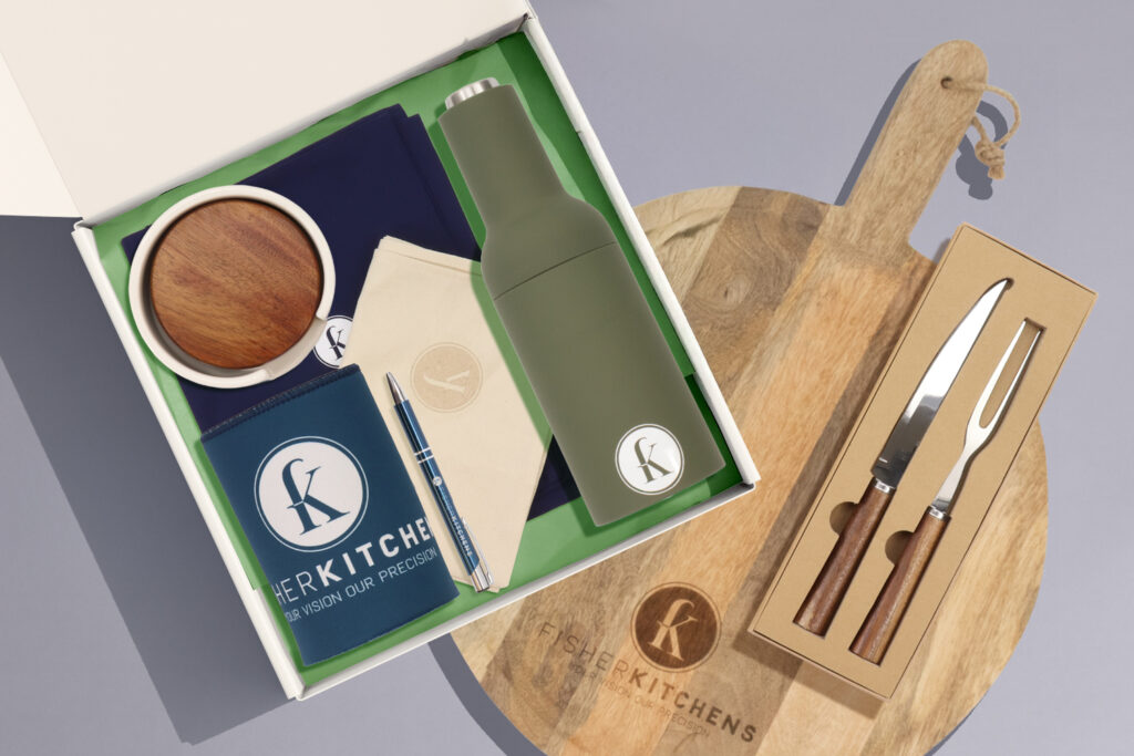 These custom thank you gift boxes were put together for high-end cabinet designers Fiser Kitchens. Filled with subtley branded premium products and locally sourced treats from the Adelaide Hills.