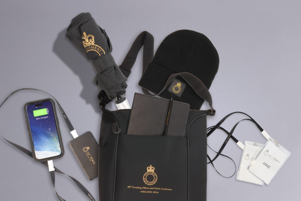 This unique gift cooler for the Presiding Officers and Clerks Conference in South Australia was filled with useful and high quality items to be use during and after the event to avoid anything going into the bin and eventually landfill.
